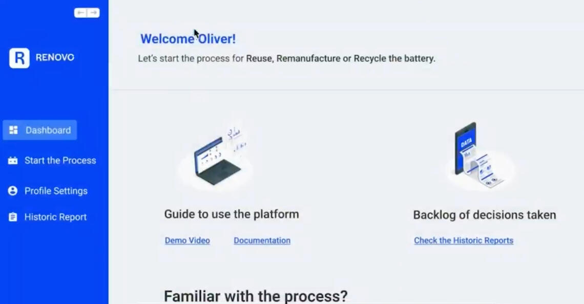 RENOVO: Proyecto conjunto de la Digital Product School de UnternehmerTUM con SAP y CatenaX, para el desarrollo de una plataforma que digitalice el reciclaje de baterías.